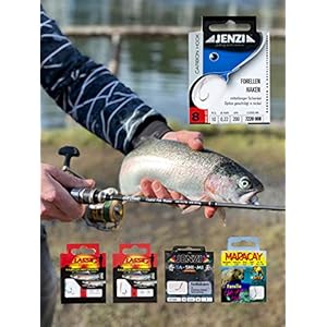 MiRoeFishing-Angelhaken-mit-Vorfach-Set-48St-Fuer-Forellen-besonders-scharfe-Fischhaken-in-verschiedenen-Groessen-und-Laengen