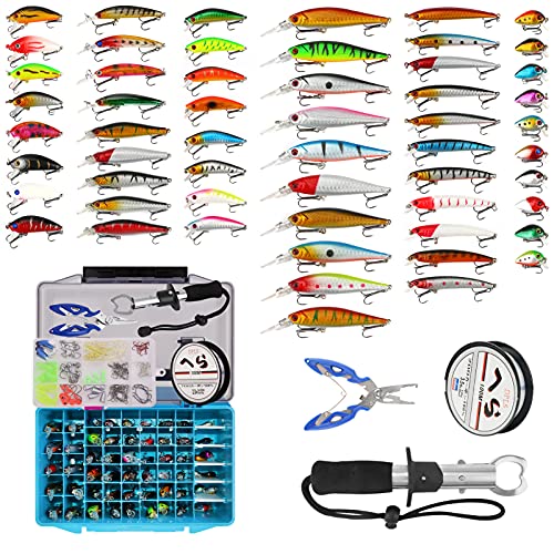 145-PCS-Kunstkoeder-Set-Angelkoffer-mit-Zubehoer-Spinnkoeder-Angeln-Koeder-gemischt-einschliesslich-Spinner-VIB-Hoehenhaken-Einzelhaken-Drehgelenke-Zangen-Fuehrer-fuer-Suesswasser-Salzwasser-Fischen