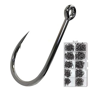 Feililong 500PCS Angelhaken aus Kohlenstoffstahl Fisch Jig Haken mit Loch Fishing Tackle Box 3# -12# 10 Größen