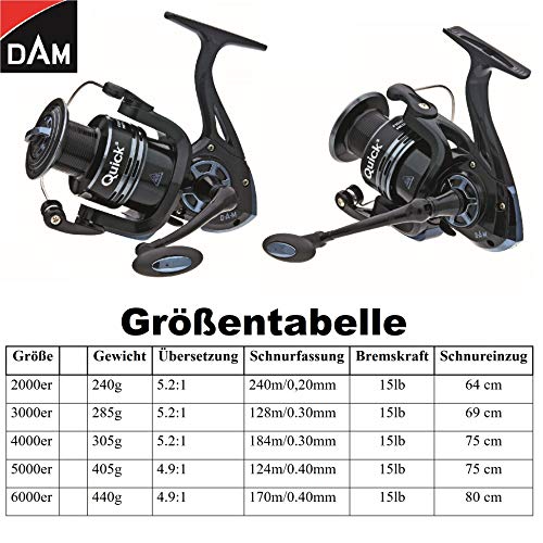 DAM Quick Fighter Pro Metal – Spinnrolle / Stationärolle konzipiert für das aktive Spinfischen auf Hecht, Zander, Barsch, Rapfen, Forelle & co. und in größeren Modellen auch ideal geeignet für die Angelei auf Waller / Wels, zu einem unvergleichbaren Preis-Leistungs-Verhältniss!
