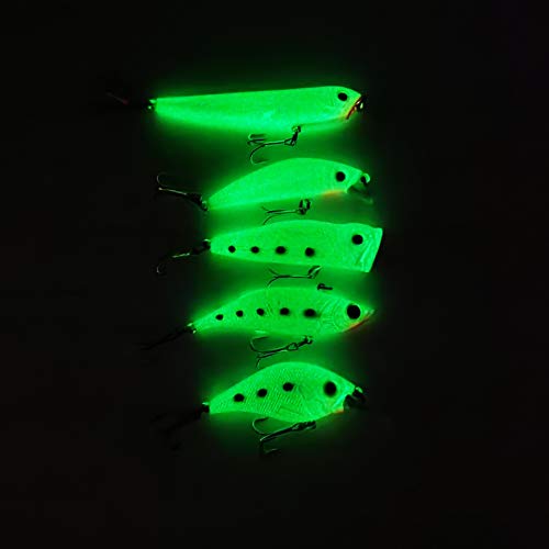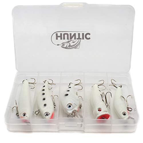 5x verschiedene UV-Wobbler inkl. Köderbox (je 1x Minnow, Popper, VIB, Crankbait, Jerkbait)