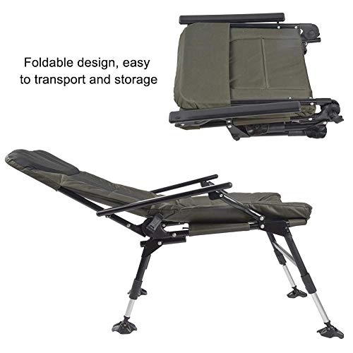 Bequem und Klappbar — Diese klappbare Angelstuhl garantiert durch Ihre erhöhte und vergrößerte Liegefläche einen sehr hohen Liegekomfort. Durch extra dicke Polsterung wird der Rücken geschont und zugleich entlastet. Darüber hinaus kann es einfach in eine kompakte Größe zusammengeklappt werden Tragen und Lagern