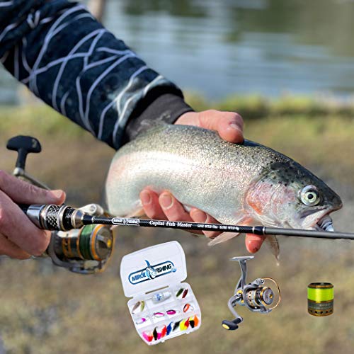 FERTIGES ANGELSET: Angelrute mit bespulter Angelrolle, UL-Köderset bestehend aus Spoons, Gummifischen und Softbaits im Komplettset. Eine Angelcombo zum direkten losangeln. Nur noch die Montage dran und los geht das Angeln – Egal ob Kinder oder Erwachsene, Anfänger oder Fortgeschrittene.