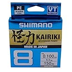 Die 8fach geflochtene Schnur Shimano Kairiki 8 wurde überarbeitet und verbessert. Die in Japan produzierte Schnur wird jetzt unter Anwendung einer speziellen Flechttechnologie, der “VT-Konstruktion Methode”, hergestellt. Es handelt sich um eine sehr starke und glatte PE Schnur, die sich perfekt zum Werfen großer Distanzen eignet. Sie ist in Durchmessern von 0,06 mm bis 0,42 mm mit einer erstaunlichen Bruchfestigkeit von 46,7 kilogramm erhältlich. Sie hat die perfekten Eigenschaften für das Spinnfischen sowohl im Süsswasser als auch im Salzwasser, da sie sehr feinfühlig und glatt ist, was zudem die Geräuschentwicklung stark reduziert. Neben den Farben Hellgrün und Stahlgrau sind jetzt zwei weitere Farben erhältlich. Ein gut sichtbares Gelb und Multicolor ergänzen nun die Farbpalette. Die Multicolor ist besonders interessant zum Angeln in größeren Tiefen. Aufgrund der Glätte und des geringen Durchmessers ist die neue Kairiki 8 eine großartige Schnur zum Jiggen, da sie einen geringen Wasserwiederstand hat und aufgrund der maximalen Dehnung von